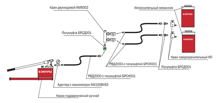 Гидравлическая система одностороннего действия с двумя рабочими механизмами, станцией и предохранительными кранами