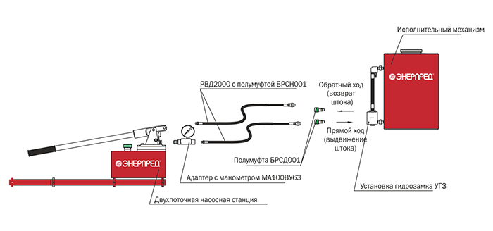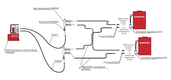 Гидравлическая система с одним рабочим механизмом двустороннего действия работающая от насосной станции с электробензоприводом