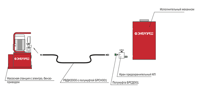 Гидравлическая система с одним рабочим механизмом одностороннего действия с предохранительным краном работающая от насосной станции с электробензоприводом
