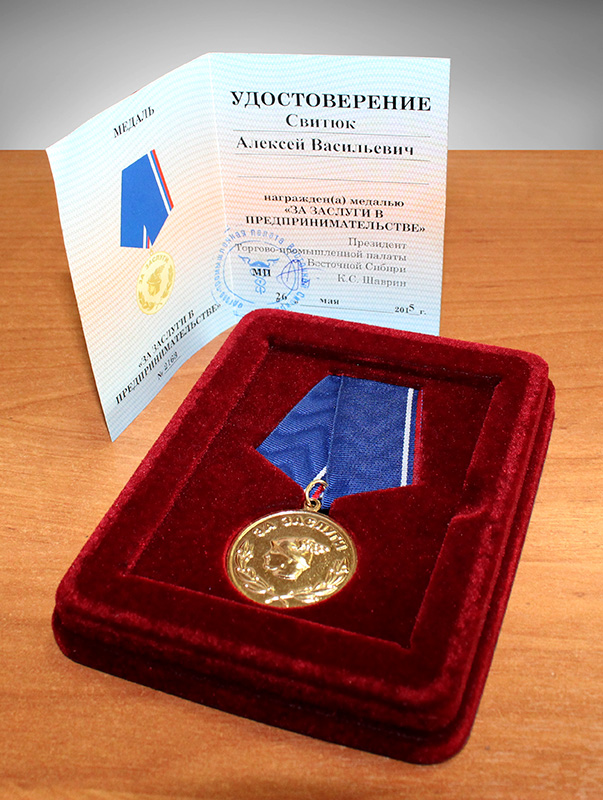General Director of JSC "TD" Enerpred "Alexei V. Svityuk awarded the medal" For merits in business. " The award was presented at a ceremonial meeting of the Chamber of Commerce of Eastern Siberia, dedicated to the Day of the entrepreneur, which is celebrated in Russia on 26 May. Awarded a medal only outstanding representatives of business, have a positive impact on the economic success of the region.