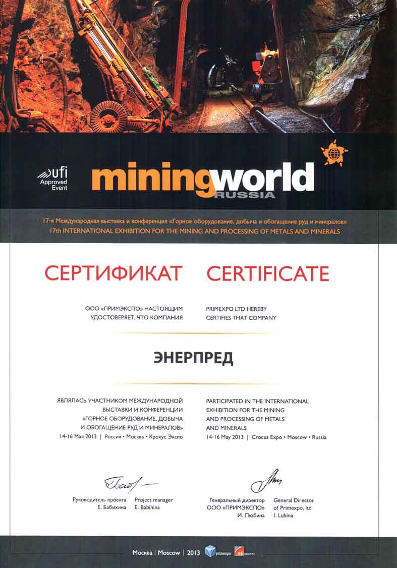 Сертификат участника MiningWorld Russia-2013