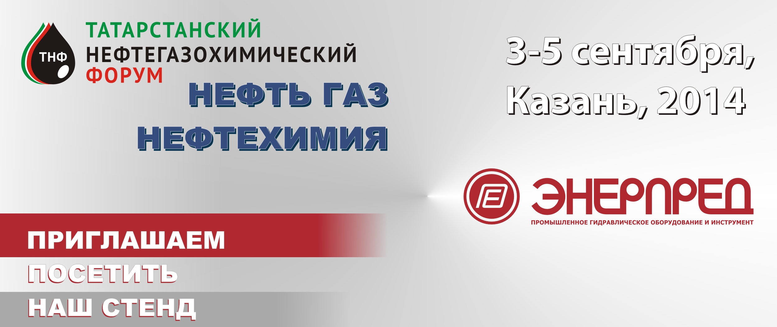 Компания «Энерпред» – лидер на Российском рынке гидравлического инструмента и оборудования – приглашает Вас посетить стенд №1.319 в павильоне №1 на ХХI Международной специализированной выставке «Нефть, газ. Нефтехимия»,которая будет проходить с 3 по 5 сентября 2014 года на территории Выставочного центра «Казанская ярмарка» (республика Татарстан, г. Казань, Оренбургский тракт, 8).